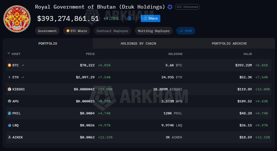 Meski melakukan penjualan dalam beberapa minggu terakhir, Bhutan masih memegang sekitar 5.600 BTC, dengan estimasi nilai sekitar $372 juta berdasarkan data on-chain yang teridentifikasi.