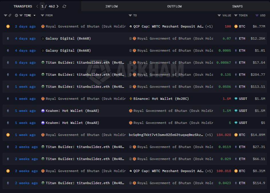 Transaksi ini menjadi bagian dari tiga pekan berturut-turut aktivitas penjualan Bitcoin oleh Bhutan.