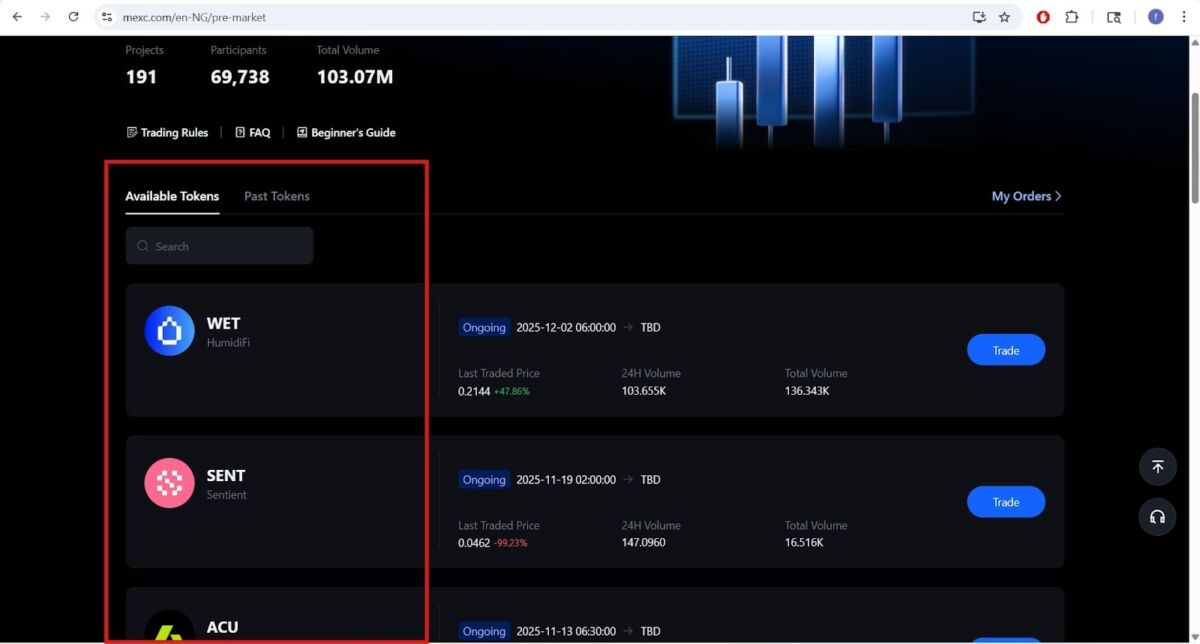 - Premarket trading allows you to place orders and establish positions before the token is listed on the exchange, reducing the risk of volatile price spikes.