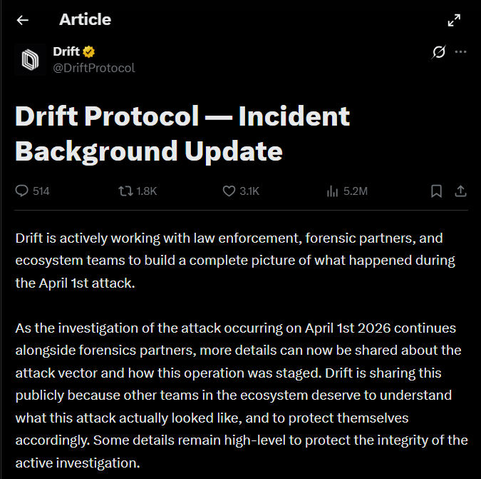 Hubungan itu kemudian dibangun lewat grup Telegram, pertemuan tatap muka di beberapa konferensi kripto lintas negara, serta onboarding Ecosystem Vault seperti integrasi normal lainnya. Drift menyebut grup tersebut bahkan menempatkan lebih dari US$1 juta modal mereka sendiri ke dalam vault, sehingga operasinya terlihat seperti aktivitas institusional yang sah.