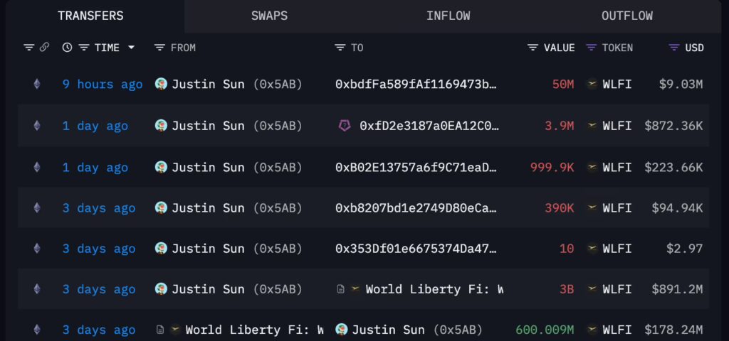 Akar konfliknya sebenarnya sudah muncul sejak September 2025. Saat itu, address yang dikaitkan dengan Sun diblacklist setelah serangkaian outbound transfer WLFI, termasuk perpindahan token bernilai sekitar US$9 juta, dan data on-chain menunjukkan address tersebut memang dibatasi untuk mengirim atau menerima WLFI.