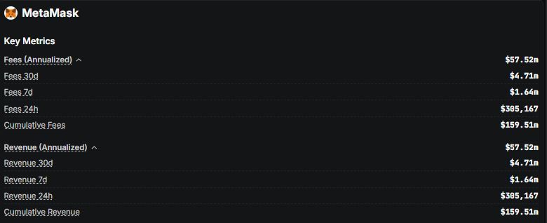 Menurut DeFiLlama, MetaMask menghasilkan sekitar $57 juta dalam pendapatan tahunan. Hal ini menunjukkan bahwa MetaMask bukan hanya dompet kripto, tapi juga menjadi gerbang perdagangan DeFi yang menangani volume transaksi besar setiap bulan.