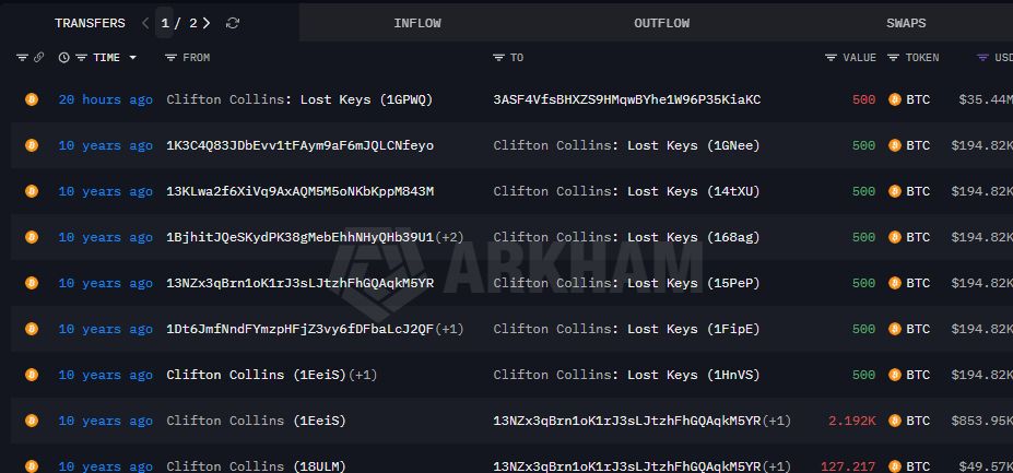 Kasus ini kembali menarik perhatian setelah data on-chain menunjukkan adanya perpindahan 500 BTC ke Coinbase Prime pada Selasa lalu. Wallet yang dikaitkan dengan Collins sebelumnya sudah tidak menunjukkan aktivitas selama lebih dari satu dekade.