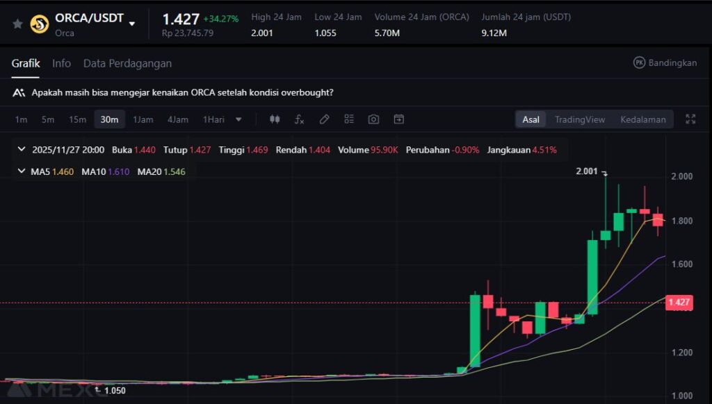 Faktor eksternal seperti kenaikan aktivitas pengguna Solana dan tingginya arus likuiditas ke DeFi turut memperkuat tren positif ini. ORCA saat ini menjadi salah satu aset DeFi dengan performa paling stabil di MEXC.