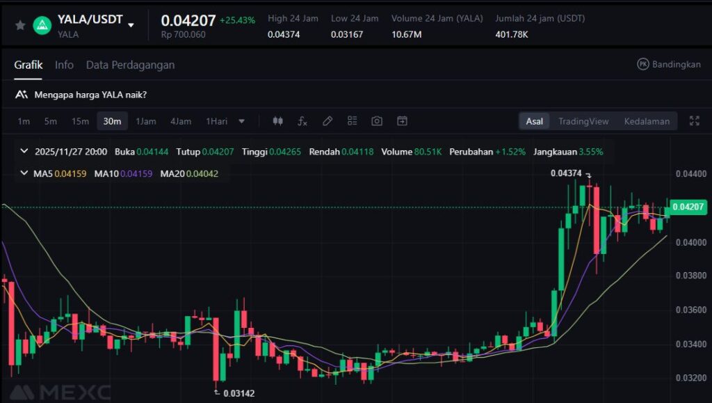 Lonjakan harga ini juga menegaskan meningkatnya minat terhadap proyek-proyek DeFi yang menghubungkan likuiditas Bitcoin dengan ekosistem kripto lainnya. Volume perdagangan YALA di MEXC melonjak tajam, menandakan momentum bullish yang kuat.
