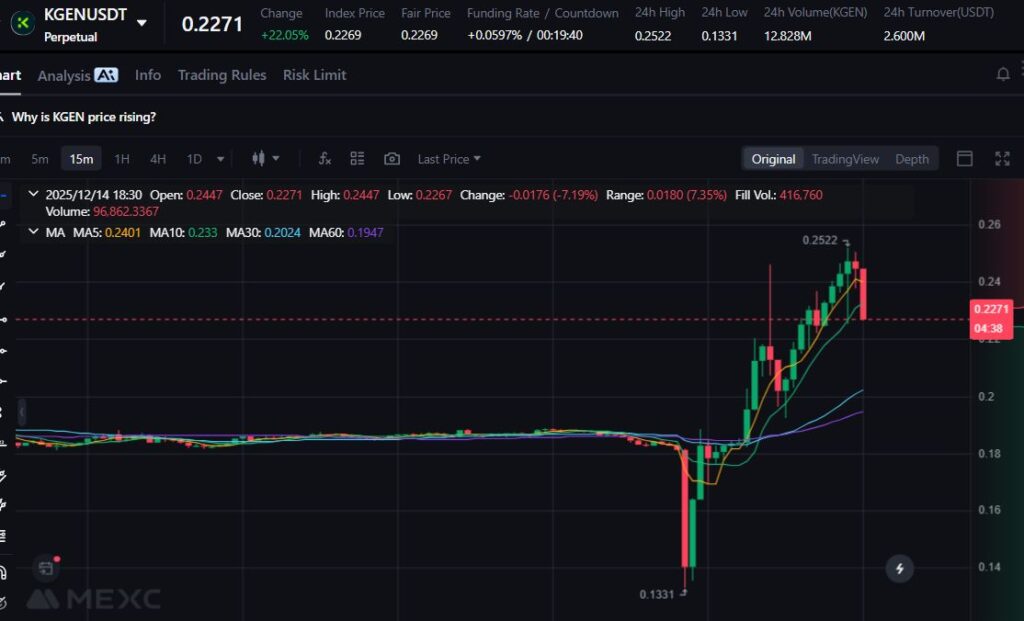 KGEN menguat 26.35% setelah peningkatan aktivitas pada ekosistem distribusi terverifikasi yang sedang dibangun. Permintaan datang dari proyek AI, gaming, dan DeFi yang membutuhkan user-base terverifikasi.