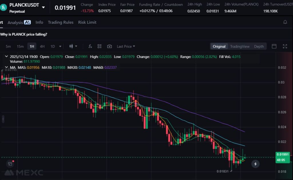 PLANCK turun 15.22% di tengah sentimen negatif pada proyek AI-infra tertentu. Penurunan ini dipengaruhi laporan komunitas terkait dugaan risiko keamanan.