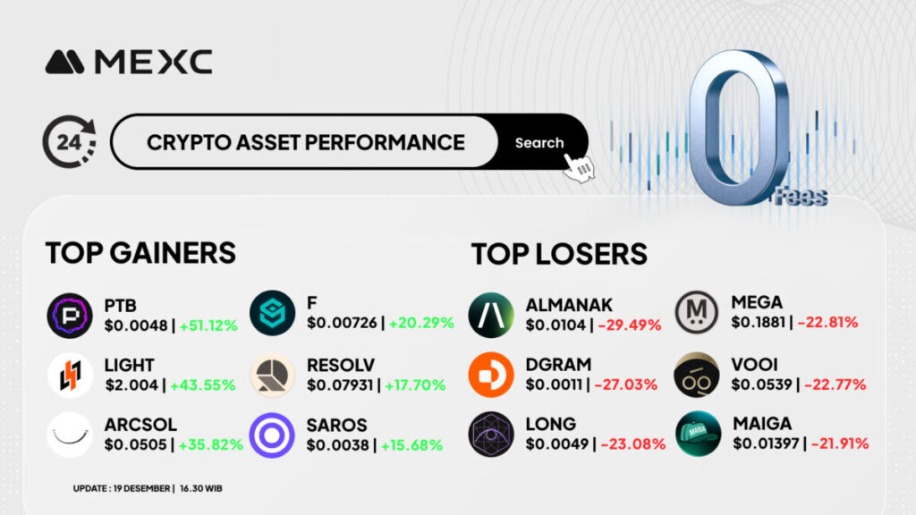 Pergerakan market pada 19 Desember 2025 menunjukkan bahwa sektor infrastruktur Bitcoin (PTB), AI modular (ARCSOL), dan stablecoin hedging (RESOLV) menjadi fokus utama investor. Kenaikan pada LIGHT dan F juga menunjukkan minat pada utilitas token yang sederhana namun fungsional.