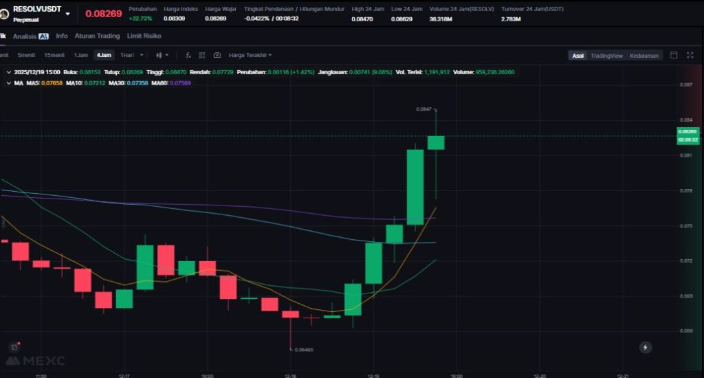 RESOLV menguat 17.70% seiring meningkatnya minat pada stablecoin USR dan mekanisme delta-neutral yang ditawarkan Resolv Protocol.