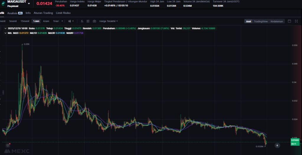 MAIGA turun 21.91% karena tekanan di sektor AI-DeFi yang sangat volatil.