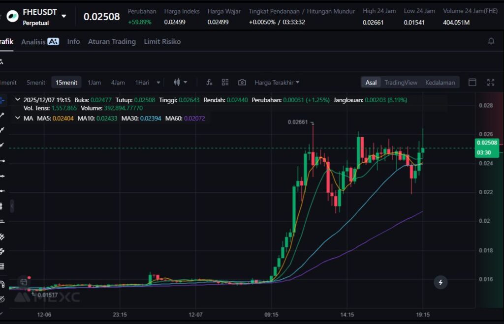 Token FHE memimpin daftar gainers dengan kenaikan hampir 60%, diperdagangkan di kisaran $0.02496. Lonjakan ini menandakan meningkatnya minat terhadap proyek yang menggabungkan privasi data dan AI.