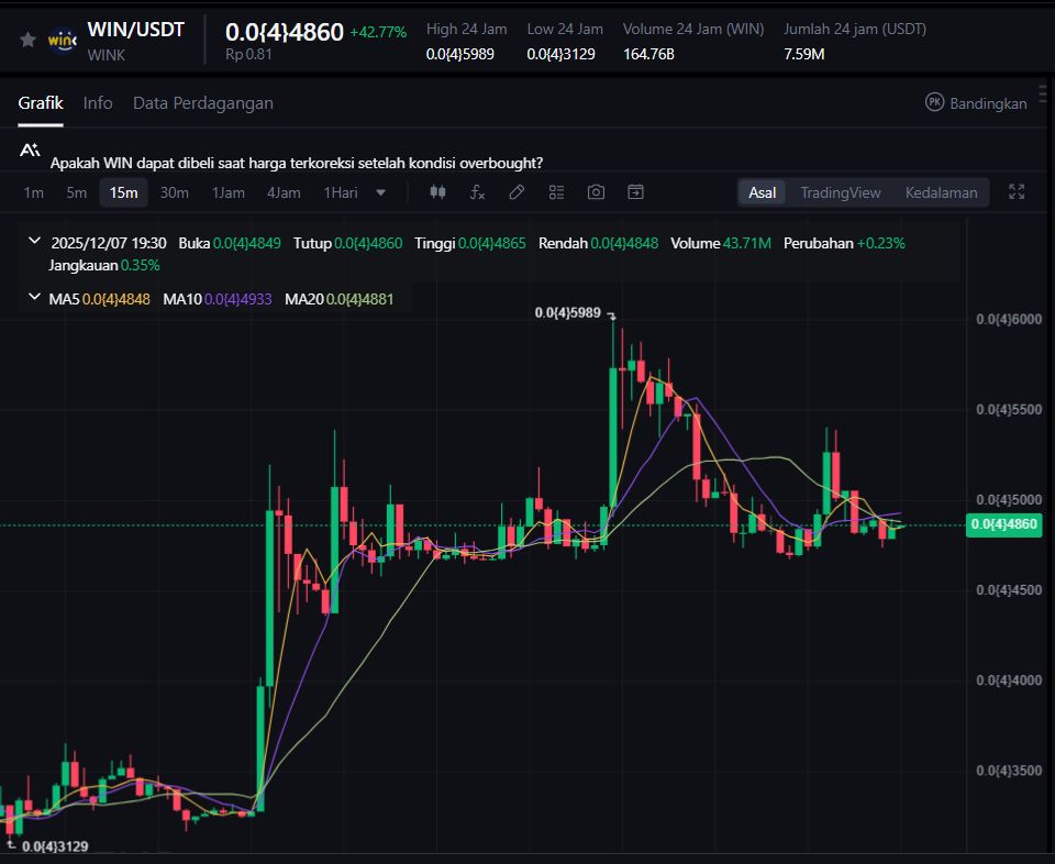 Token WIN naik 40% ke $0.00004, menjadi salah satu proyek oracle yang menarik minat trader harian.