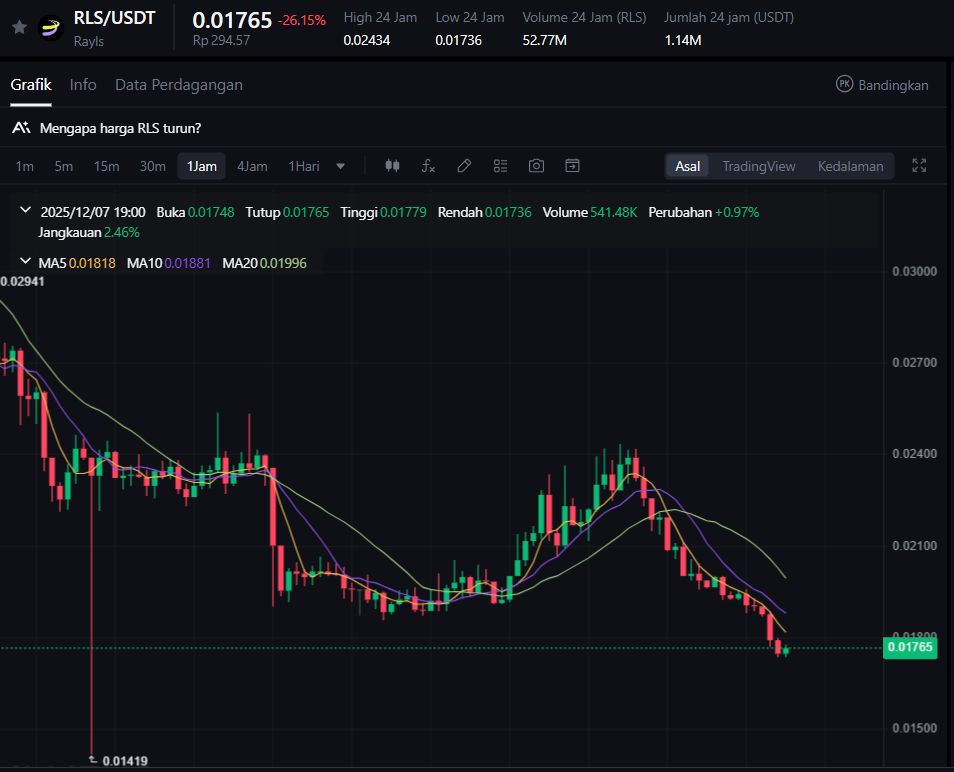 Token RLS turun 25% ke $0.01777 setelah sempat melonjak awal pekan ini.