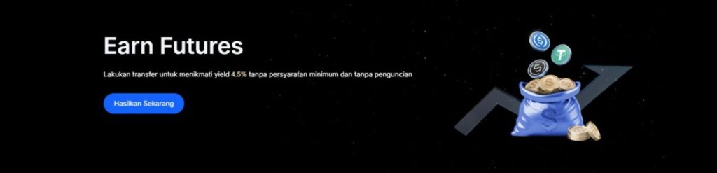 Bagi trader derivatif, Futures Earn memungkinkan saldo stablecoin di akun Futures menghasilkan bunga harian tanpa mengganggu aktivitas trading. Perhitungan bunga dilakukan berdasarkan ekuitas rata-rata akun Futures.