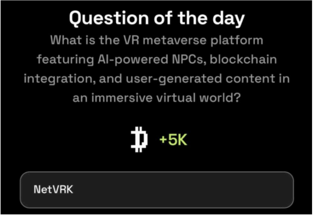 Today’s Dropee Question of the Day for November 13: What is the VR metaverse platform featuring AI-powered NPCs, blockchain integration, and user-generated content in an immersive virtual world?