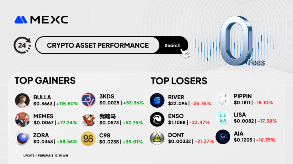 Pasar kripto di MEXC kembali menunjukkan pergerakan agresif dalam 24 jam terakhir. Sejumlah token mencatatkan lonjakan tajam berkat dorongan sentimen komunitas, narasi meme, hingga minat terhadap sektor creator economy dan DeFi. Di sisi lain, beberapa aset mengalami koreksi cukup dalam akibat aksi ambil untung dan meredanya hype jangka pendek.