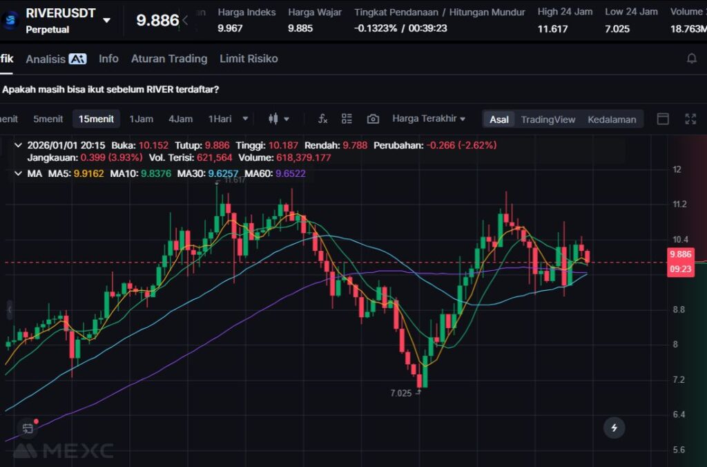 RIVER turun -11.16% dan diperdagangkan di $7.313. Koreksi ini menutup daftar losers hari ini, dengan penurunan yang masih tergolong besar untuk satu sesi.