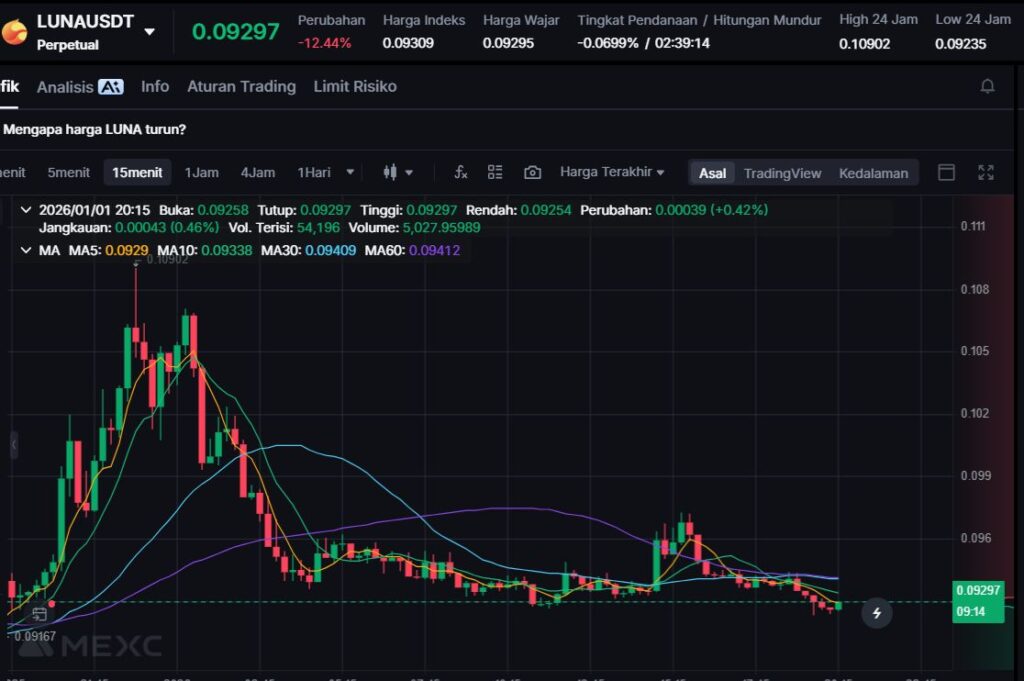 LUNA melemah -11.78% ke $0.093. Koreksi ini menunjukkan tekanan jual masih terasa, terutama ketika market sedang memilih aset yang “punya momentum” untuk dikejar.