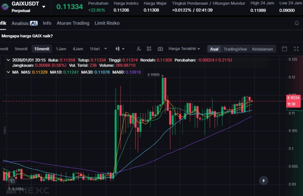 GAIX menguat +20.24% ke level $0.1106. Ini termasuk kenaikan yang cukup signifikan untuk token bertema AI yang biasanya cepat bereaksi terhadap arus narasi market.