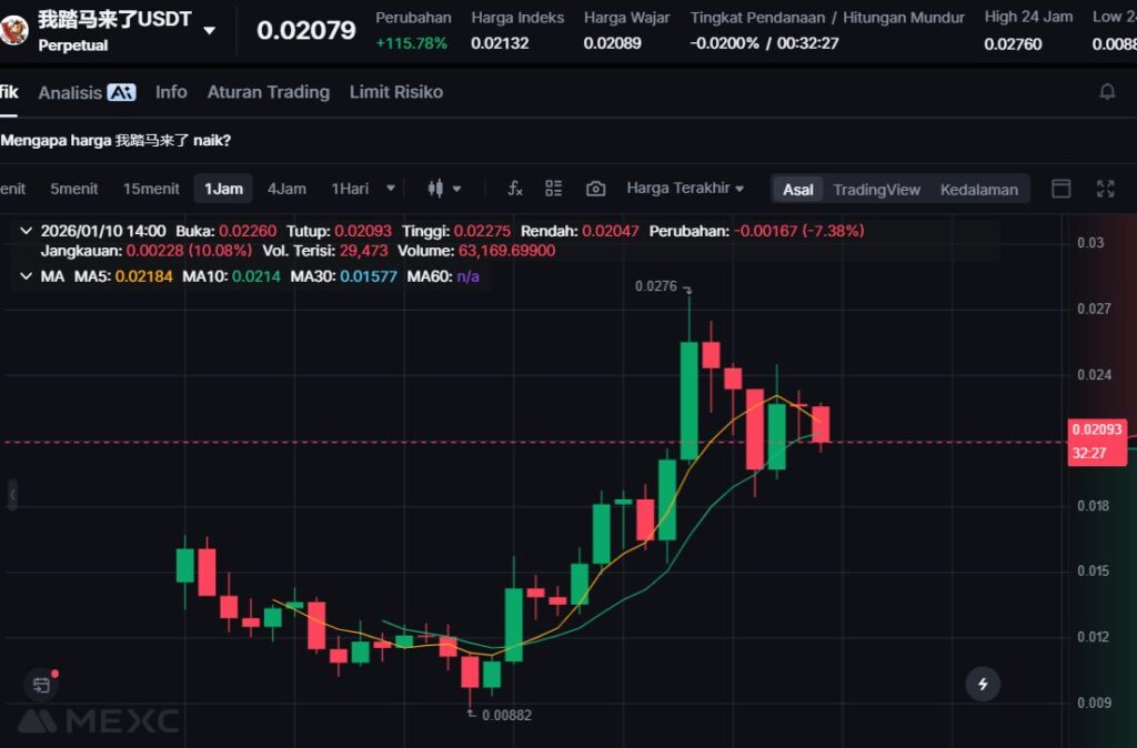 我踏马来了 memimpin daftar penguatan hari ini dengan lonjakan +145.33% ke harga $0.0239. Kenaikan ekstrem seperti ini biasanya menandakan arus momentum yang sangat kencang, tetapi juga membuat volatilitasnya jauh lebih tinggi dibanding aset lain.