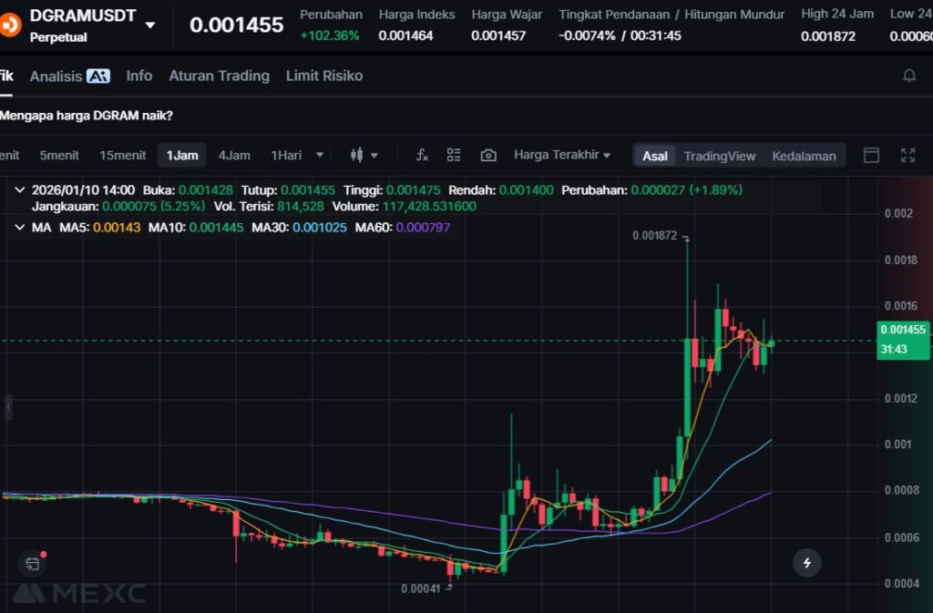 DGRAM melonjak +88.45% dan diperdagangkan di $0.0013. Lonjakan besar ini menempatkan DGRAM sebagai salah satu token dengan performa paling agresif pada sesi pembaruan hari ini.