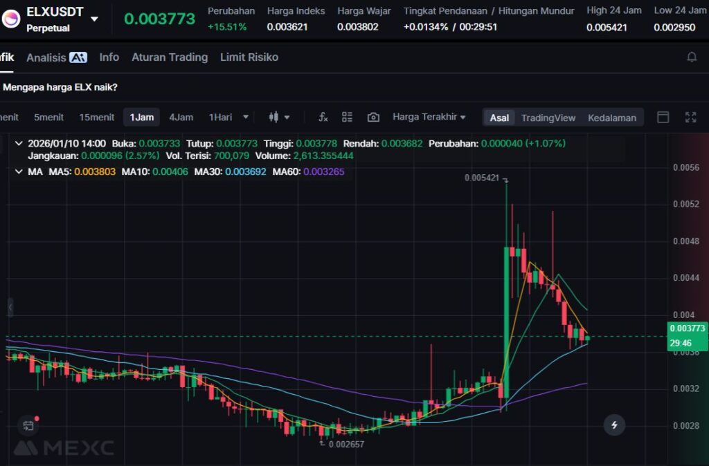 ELX menguat +17.38% dan diperdagangkan di $0.0038. Pergerakan ini menempatkan ELX sebagai salah satu gainers hari ini, sejalan dengan narasi peningkatan likuiditas di DEX yang terus dibutuhkan.
