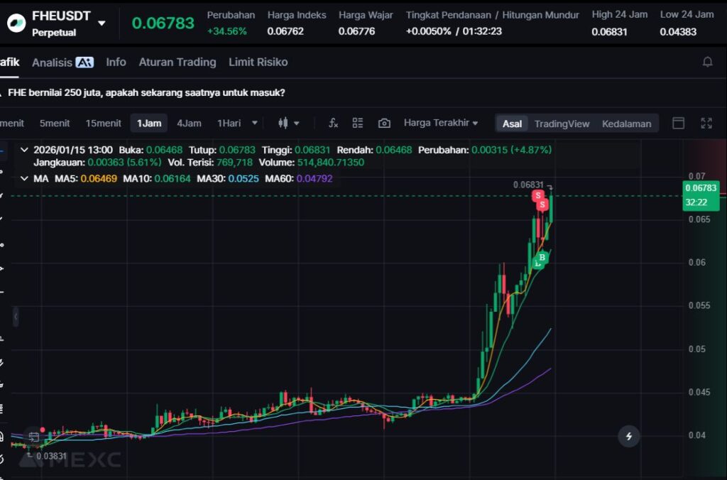 Kenaikan +26.51% menempatkan FHE sebagai pemimpin gainers hari ini, menandakan adanya dorongan minat pasar terhadap token bertema privasi dan infrastruktur kripto yang mendukung ekosistem AI.