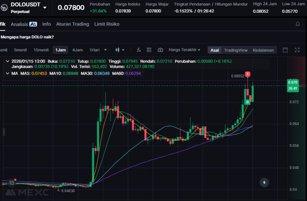 Dengan kenaikan +25.94%, DOLO menjadi salah satu aset yang paling mencolok hari ini, mencerminkan minat trader pada proyek DeFi yang berfokus pada strategi modal dan utilitas lintas jaringan.