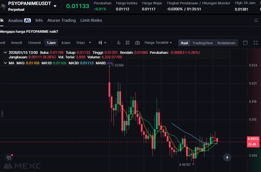 Naiknya +12.22% mengindikasikan PSYOPANIME masih menjadi aset spekulatif yang aktif diperdagangkan, khususnya oleh komunitas meme coin yang responsif terhadap tren viral.