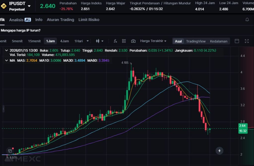 Penurunan -27.22% menjadikan IP sebagai loser terdalam hari ini, mengindikasikan adanya tekanan jual kuat pada aset narasi “IP tokenization” dalam periode 24 jam terakhir.