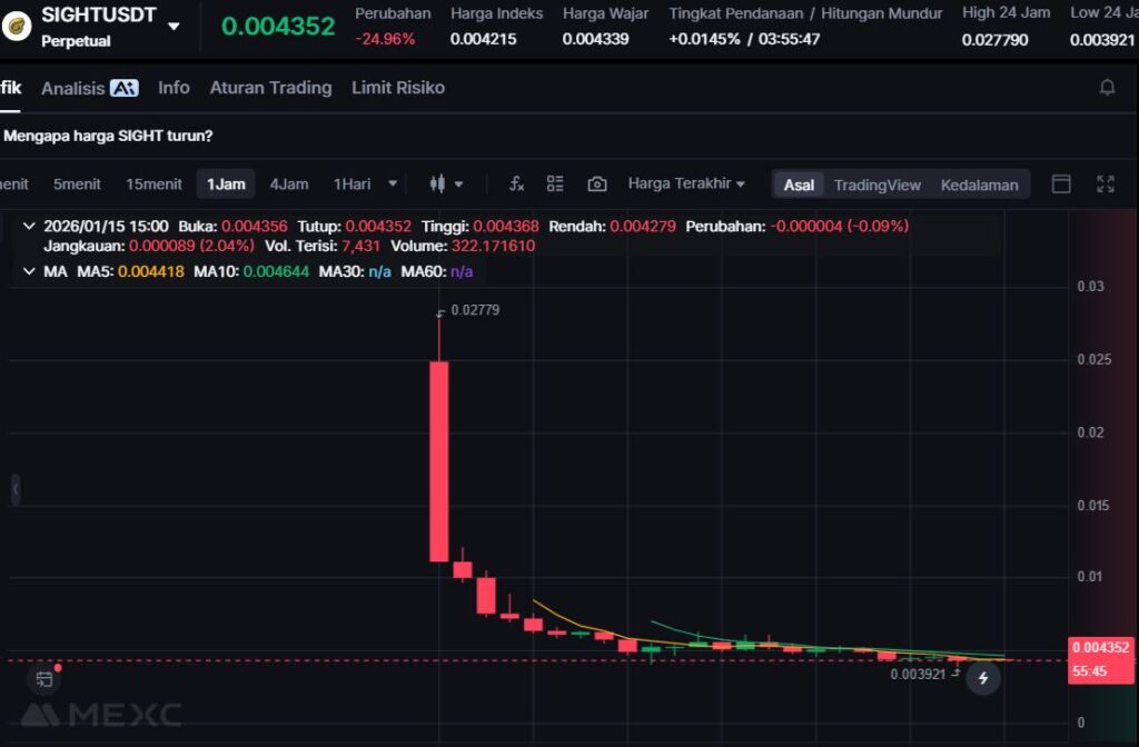 Dengan penurunan -23.03%, SIGHT masuk daftar top losers hari ini dan menjadi salah satu token yang mengalami tekanan kuat dalam 24 jam terakhir.