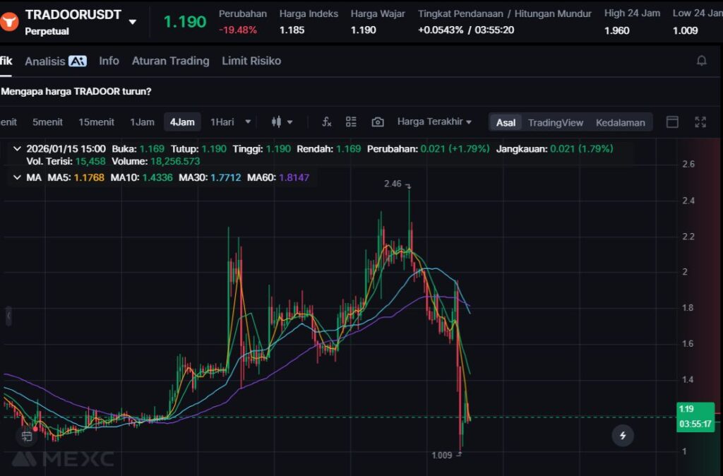Turun -20.36%, TRADOOR mencatat pelemahan tajam dan menunjukkan pasar sedang menguji ketahanan token derivatif baru dalam kondisi volatil.