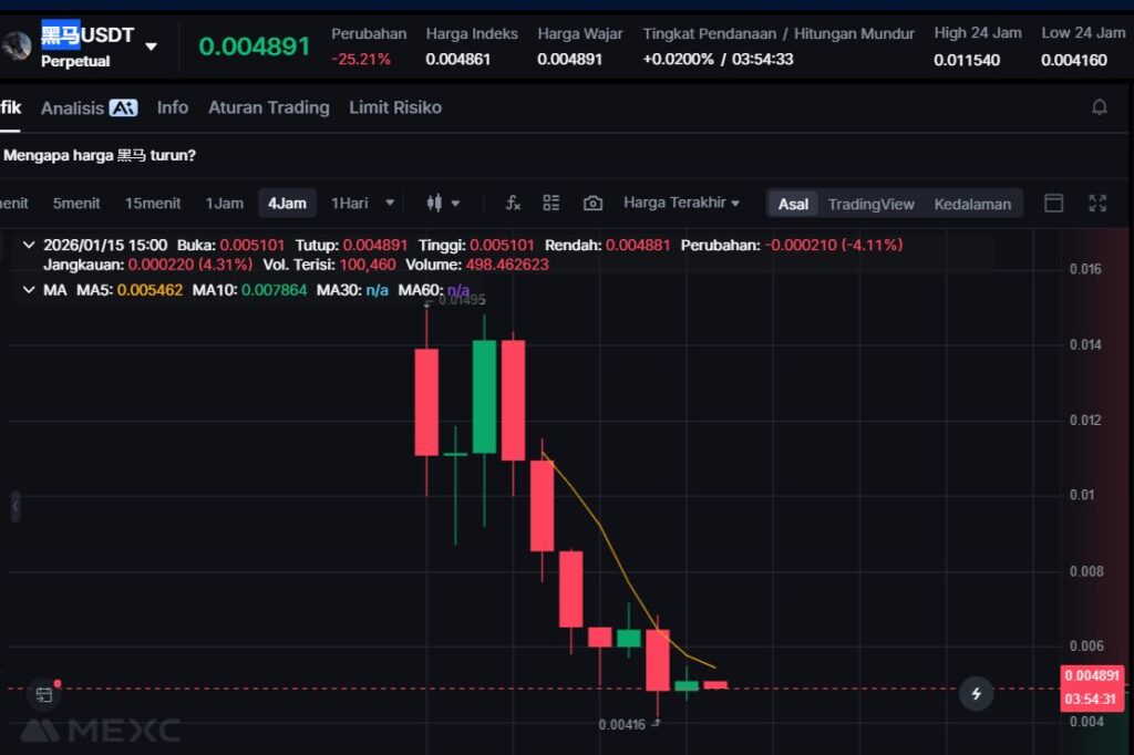 Penurunan -18.45% menempatkan 黑马 sebagai salah satu koreksi terbesar hari ini, menegaskan karakter meme coin yang sangat sensitif terhadap perubahan sentimen dan likuiditas.