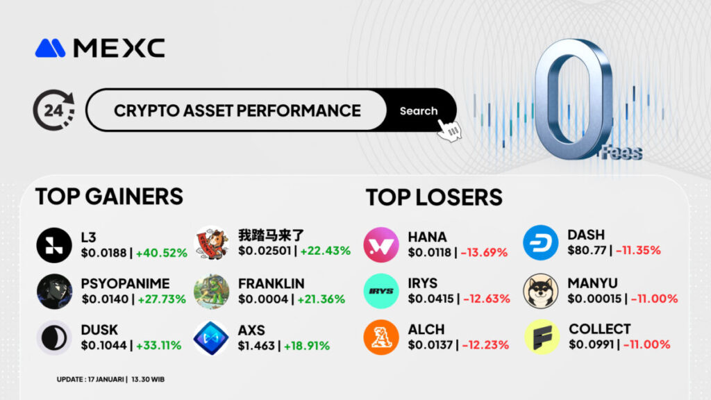 Pasar kripto di MEXC hari ini didominasi oleh token dengan narasi Web3 engagement, AI kreatif, dan meme culture, seperti L3 dan PSYOPANIME yang mencatat kenaikan signifikan. Di sisi lain, koreksi pada token seperti HANA dan IRYS menunjukkan bahwa volatilitas masih tinggi dan sentimen pasar dapat berubah dengan cepat.