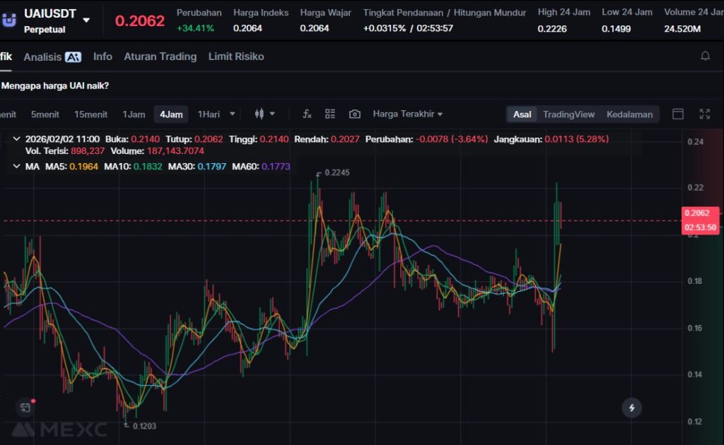 $UAI memimpin daftar top gainers setelah mencatat kenaikan hampir 34% dalam 24 jam terakhir. Lonjakan ini menunjukkan meningkatnya minat market terhadap proyek dengan fokus utility dan governance, terutama di tengah narasi penguatan ekosistem dan tools untuk developer.