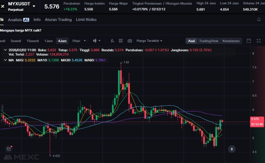 $MYX menguat lebih dari 18% seiring meningkatnya perhatian pada sektor decentralized derivatives. Kenaikan ini didukung oleh minat trader terhadap solusi perpetual futures yang menawarkan efisiensi eksekusi di market on-chain.