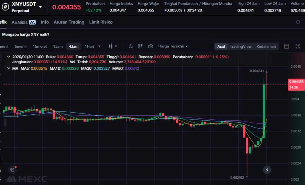 XNY mencatat lonjakan harga paling tinggi hari ini dengan kenaikan lebih dari 50%. Pergerakan agresif ini mencerminkan meningkatnya minat pasar terhadap token bertema data dan AI, yang kembali menjadi sorotan di tengah berkembangnya sektor DeSci dan AI blockchain.