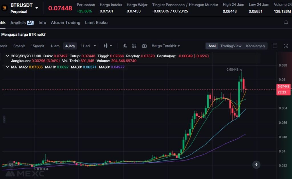 BTR mengalami kenaikan solid seiring meningkatnya perhatian pasar terhadap solusi Layer-2 Bitcoin. Pergerakan ini mencerminkan optimisme terhadap ekspansi utilitas Bitcoin ke sektor DeFi dan smart contract.