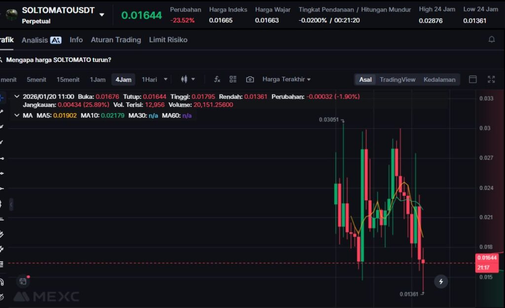 SOLTOMATO mengalami penurunan lanjutan setelah fase hype tinggi sebelumnya. Aksi ambil untung menjadi faktor utama pelemahan harga dalam jangka pendek.
