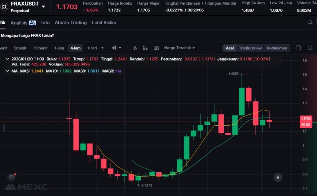 FRAX mencatat penurunan signifikan meskipun berstatus stablecoin hybrid. Pergerakan ini dipengaruhi oleh dinamika pasar dan mekanisme algoritmik dalam ekosistem Frax.