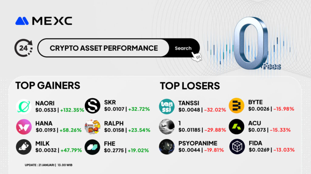 Pergerakan pasar kripto di MEXC hari ini menunjukkan dominasi sektor AI, keamanan data, dan infrastruktur Web3 pada jajaran top gainers, sementara aset meme dan infrastruktur tertentu mengalami koreksi sehat setelah reli sebelumnya. Volatilitas tinggi tetap menjadi ciri utama pasar altcoin.