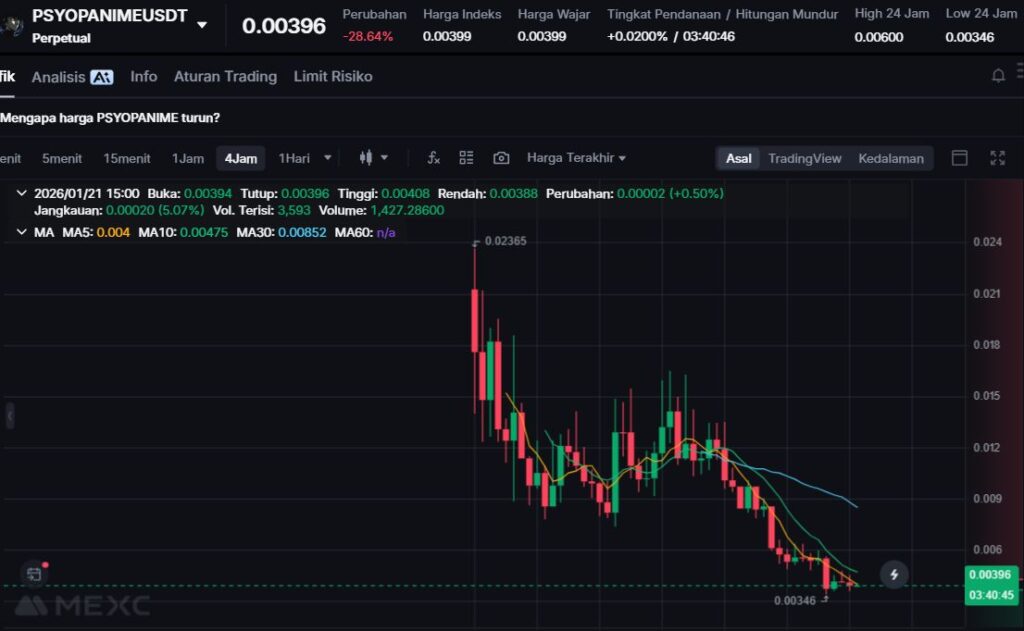 PSYOPANIME turun sebesar -19.81%, melanjutkan fase koreksi setelah lonjakan harga sebelumnya. Penurunan ini mencerminkan tingginya volatilitas pada aset meme berbasis narasi media.
