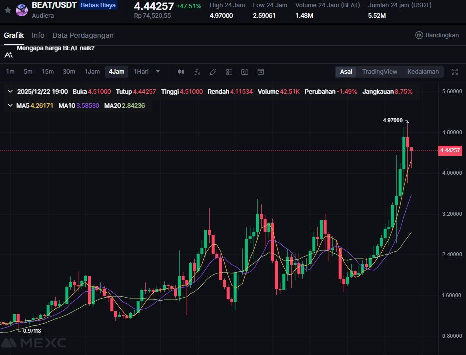 BEAT adalah token dari Audiera, ekosistem Web3 yang menggabungkan musik, dance gaming, dan AI creative tools. Token ini digunakan untuk pembelian in-game, NFT musik, voting melalui veBEAT, dan sistem reward berbasis partisipasi.