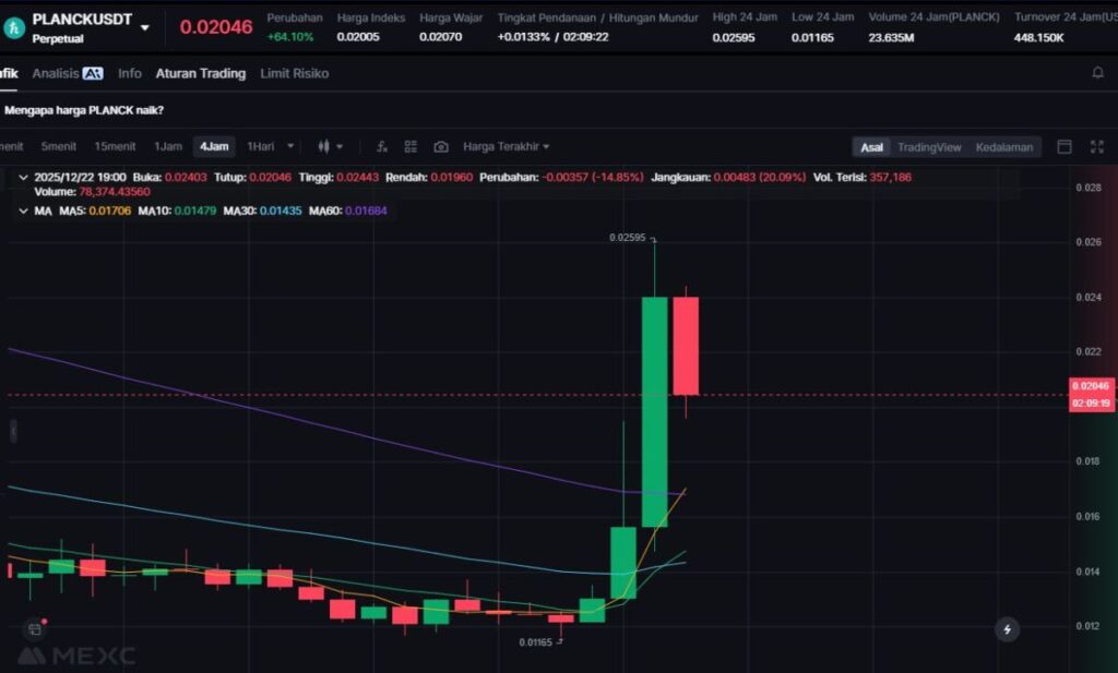 PLANCK naik 31.16% karena minat terhadap infrastruktur AI dan DePIN yang kembali meningkat.