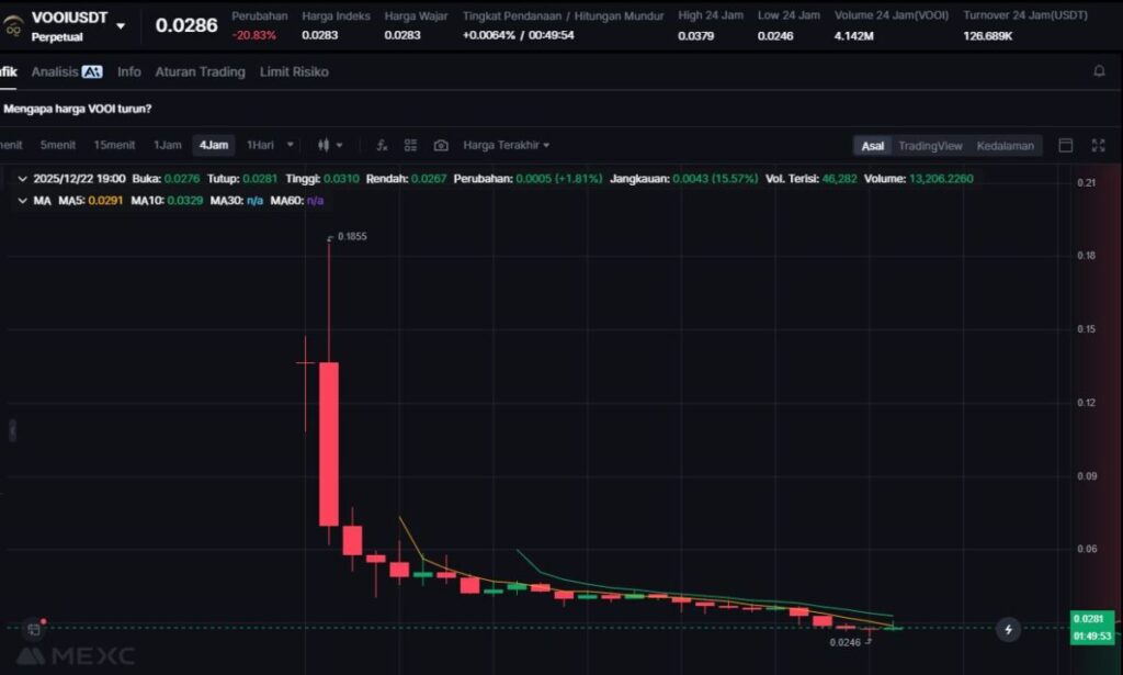VOOI melemah 22.25% seiring penurunan minat pada platform chain-abstracted DEX aggregator.
