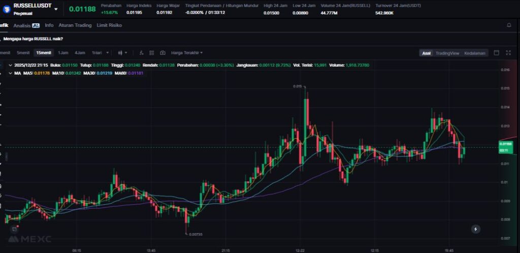 RUSSELL naik 21.44% didorong oleh kuatnya komunitas Base dan hype seputar “Coinbase Dog” yang viral di sosial media.