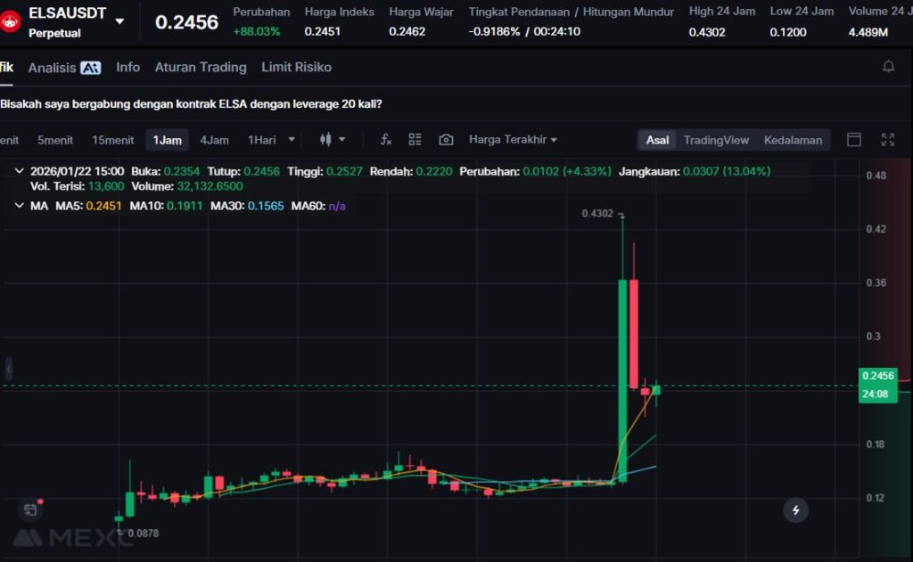 ELSA mencatatkan lonjakan harga tertinggi hari ini dengan kenaikan +185.12%, didorong oleh peningkatan volume transaksi yang sangat agresif dan spekulasi pasar terhadap utilitas token di sektor data terdesentralisasi.