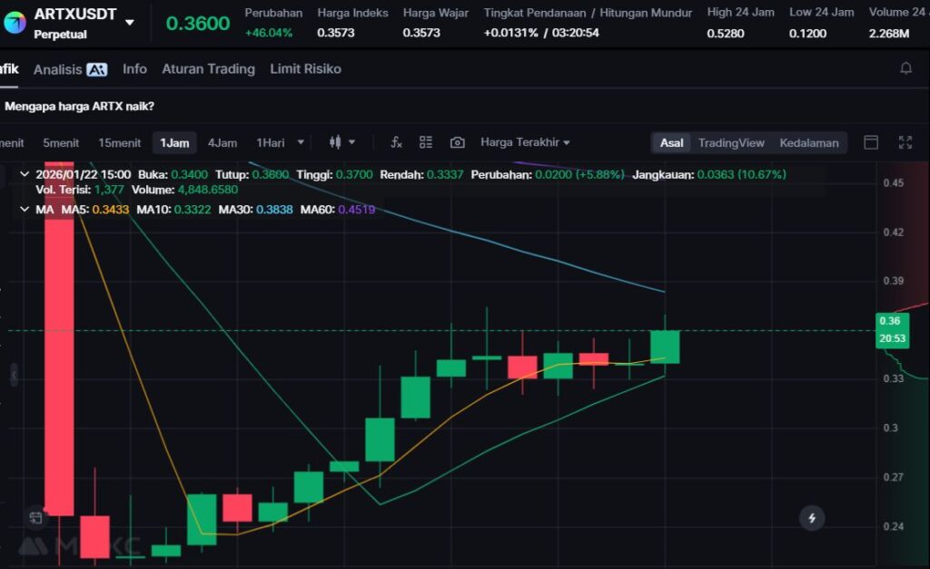 ARTX naik +41.29%, didukung oleh meningkatnya perhatian pasar terhadap tokenisasi aset budaya dan seni berbasis blockchain. Minat investor terlihat menguat seiring narasi real-world asset tokenization.