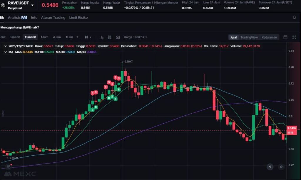 RAVE menguat 22.48% karena pertumbuhan komunitas entertainment Web3 yang menggabungkan musik, event, dan charity-driven culture.