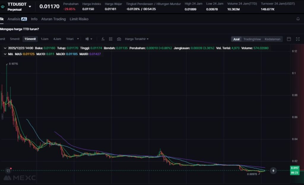 TTD turun 34.22% akibat aksi jual lanjutan di proyek AI trading tools yang sebelumnya sempat mencatat reli.
